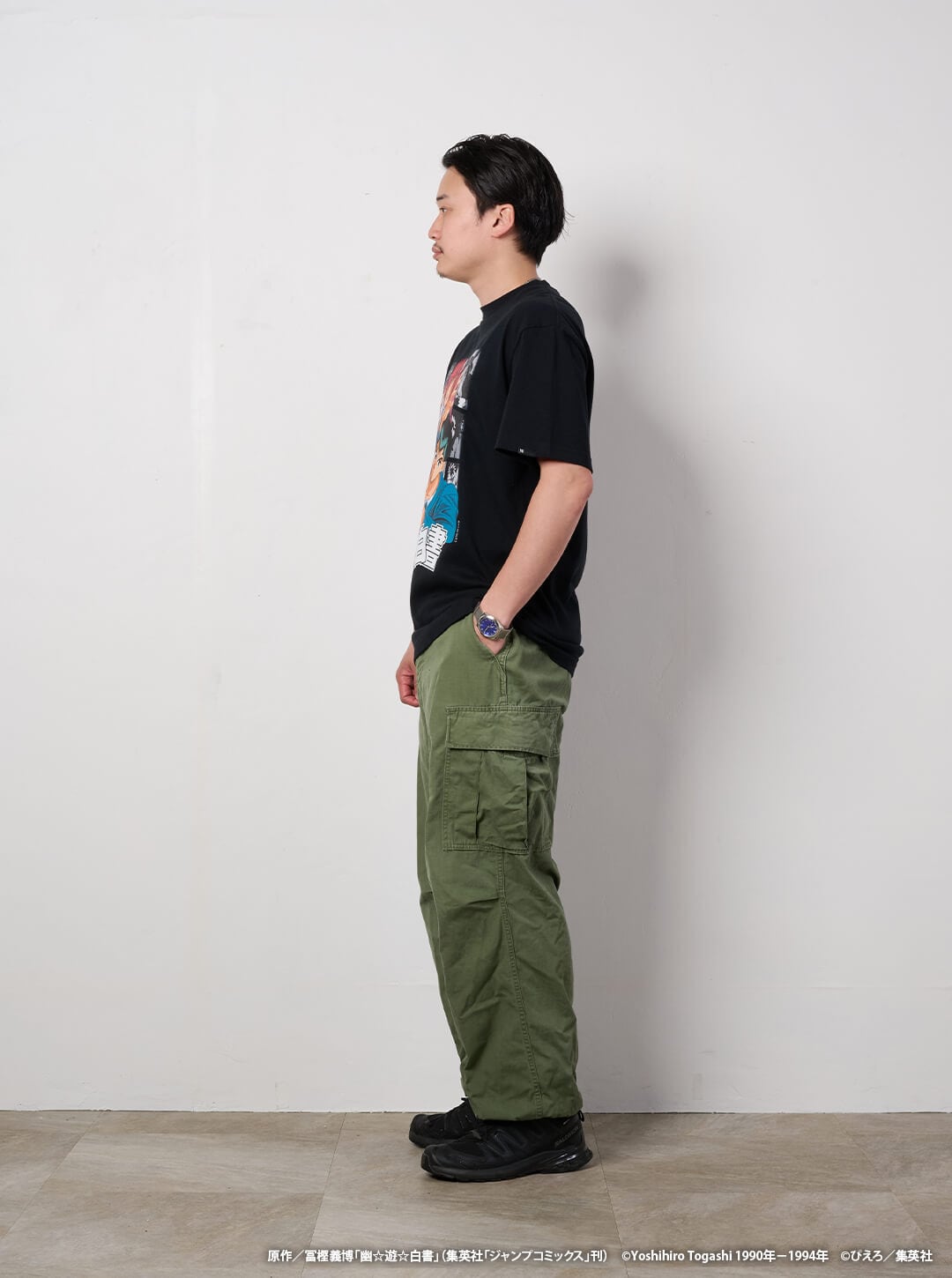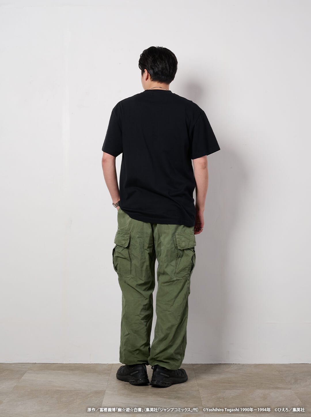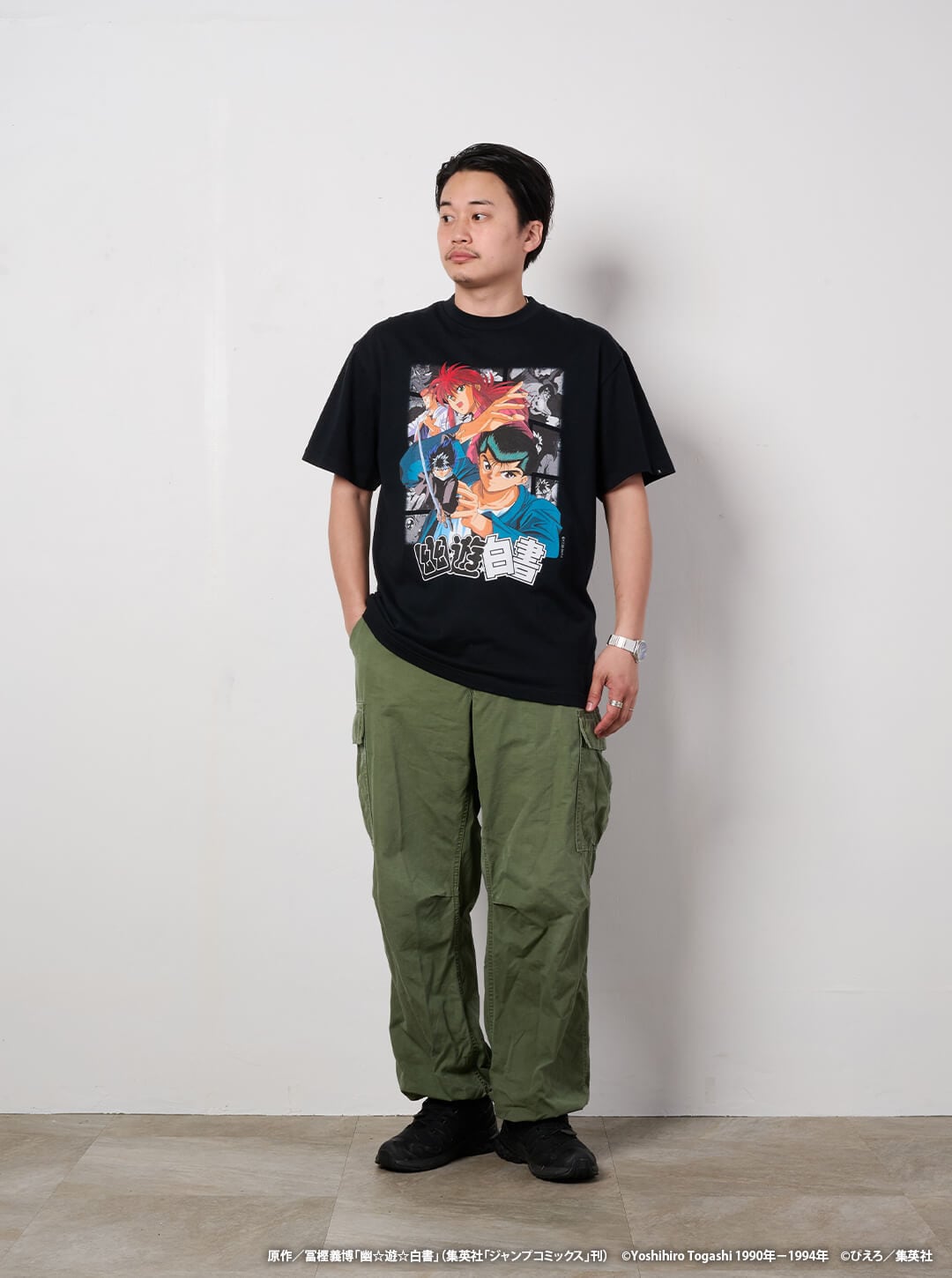 90年代を代表する大人気TVアニメ「幽☆遊☆白書」から、幽助たち4人のビジュアルを大胆に使用し、背景にモノクロのアニメシーンを散りばめたインパクトのあるデザインに仕上げました。 Tシャツのボディは6.0オンスの生地を使用したUS規格のボディを採用。ウォッシュ加工を加えているため、自然な使用感が感じられます。 作品の魅力を生かしながらも、大人が格好良く着れる一枚になっています。 ※モデル:171cm/63kg(Lサイズ着用) 【予約販売期間】 2026年4月27日(月)10:00~2026年5月16日(土)10:00 ※商品の発送は2026年6月下旬~7月上旬を予定しています。 ■カラー:ブラック ■素材:コットン100% ▼サイズ M:身丈70cm/身幅50.5cm/肩幅46cm/袖丈20cm L:身丈71cm/身幅53.5cm/肩幅49cm/袖丈21.5cm XL:身丈73.5cm/身幅56.5cm/肩幅52.5cm/袖丈23cm XXL:身丈78cm/身幅58cm/肩幅55cm/袖丈23.5cm ※サイズ表記には多少の誤差が生じる場合がございます。 【注意事項】 ・商品の発送は2026年6月下旬~7月上旬を予定しています。 ・ご注文後のキャンセルはお受けしておりません。 【アンケート特典について】 購入(応募)完了ページのアンケートリンクよりアンケートにご回答いただいた方に、もれなく特典のステッカーをプレゼントいたします。 ※アンケートの最後の設問に購入者の氏名をご記入いただく必要があります。購入者氏名の記載が無い場合はお届けができませんので、あらかじめご了承ください。 原作/冨樫義博「幽☆遊☆白書」(集英社「ジャンプコミックス」刊) ©Yoshihiro Togashi 1990年-1994年 ©ぴえろ/集英社